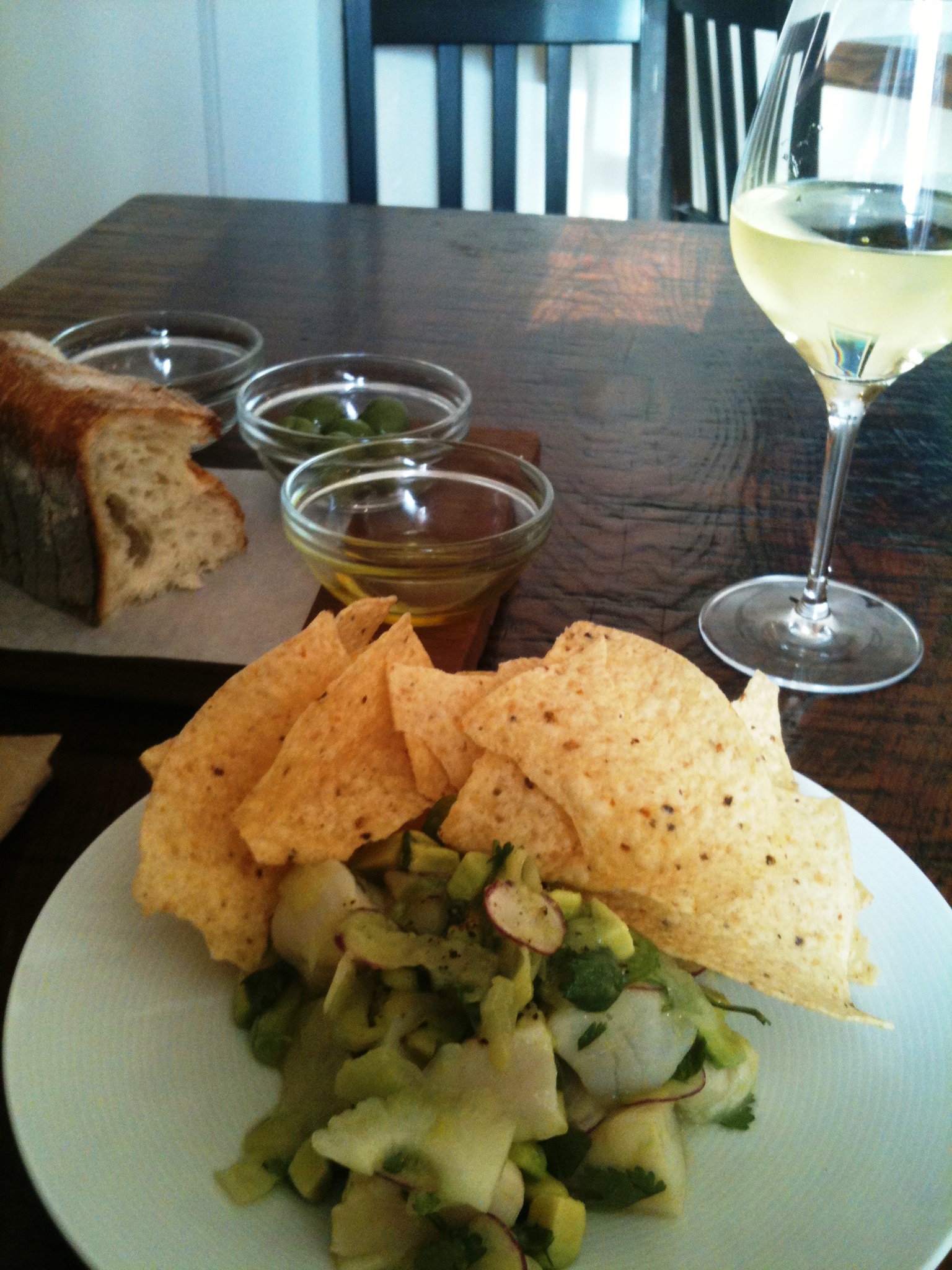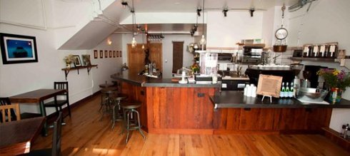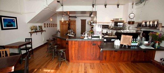 The restaurant is at the end of Broad Street in the Financial District, with a small patio for outdoor dining. The décor is clean and almost beachy, with white-washed walls and blue accents.