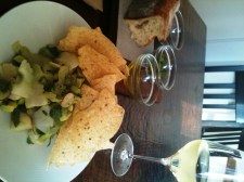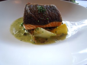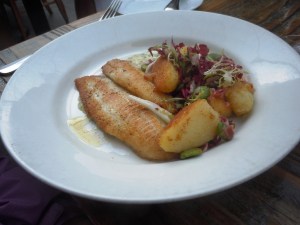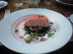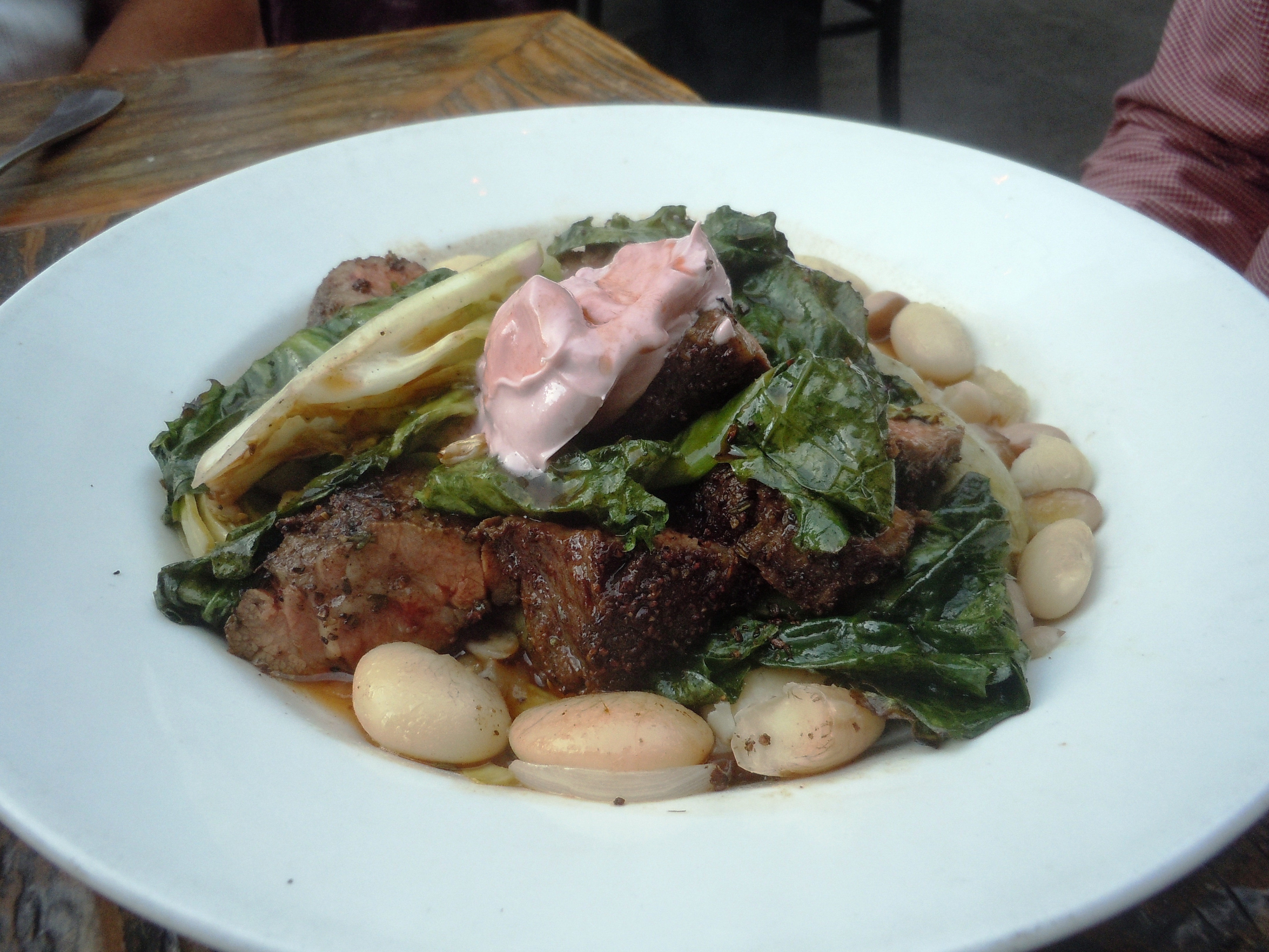From the level of service, you would have no idea the restaurant was only eight weeks old. Our server, Stephanie, was wonderful—funny, helpful and attentive. When I asked her about nuts, she was very understanding, and checked with the kitchen on everything (and even reminded me between courses that she was doing so). But here was the most amazing part of all—my brother was supposed to join us, but got out of work very late and didn’t end up making it there until after we had finished our entrees. When he told us he was on his way, we put in an order for the boneless buttermilk fried chicken (with celery root mousseline, habañero bbq syrup, wilted greens, avocado salad and farmers cheese), and the food arrived before he did. After about five minutes, Stephanie asked us if we wanted it under the heat lamp, and we said not to bother because he wasn’t picky and should be there any minute. She kept coming back and urging us to put it under the heat lamp, and we kept refusing, until the manager came over and we assured her as well that it wasn’t a big deal. She insisted on taking back the dish and making it all over again right before he got there, so it would be hot and ready to go when he arrived. Now that is service.