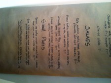 The menus are dazzling. As mentioned before, the cocktail menu is intriguing and sardonic, the bar menu has some great options and the dinner menu is small but has many tempting dishes.